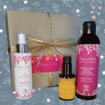 Un coffret de Noël avec une Eau de Rose de l’Himalaya  (100 ml,) une Huile d’abricot sauvage de l’Himalaya (30 ml) et un shampooing (200 ml) au choix parmi nos 5 références.